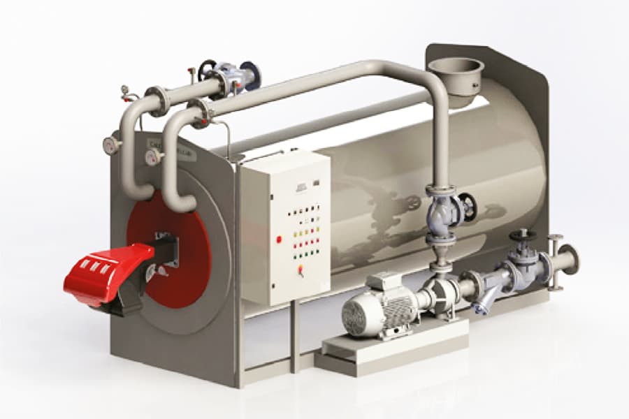 Atmoszférikus kivitelű, túlnyomás nélküli termoolaj kazánok 350 °C-ig, álló és fekvő kivitelben, 116-4.650 kW teljesítménnyel