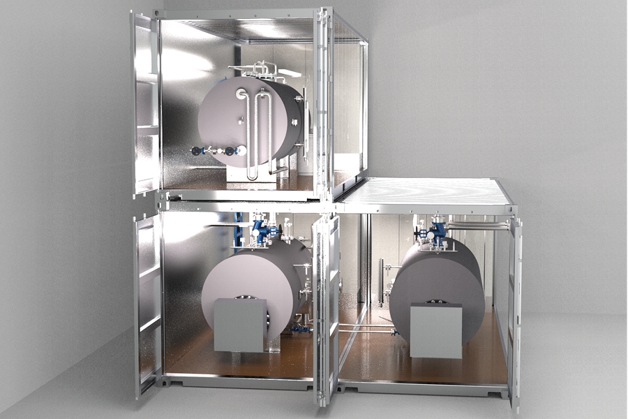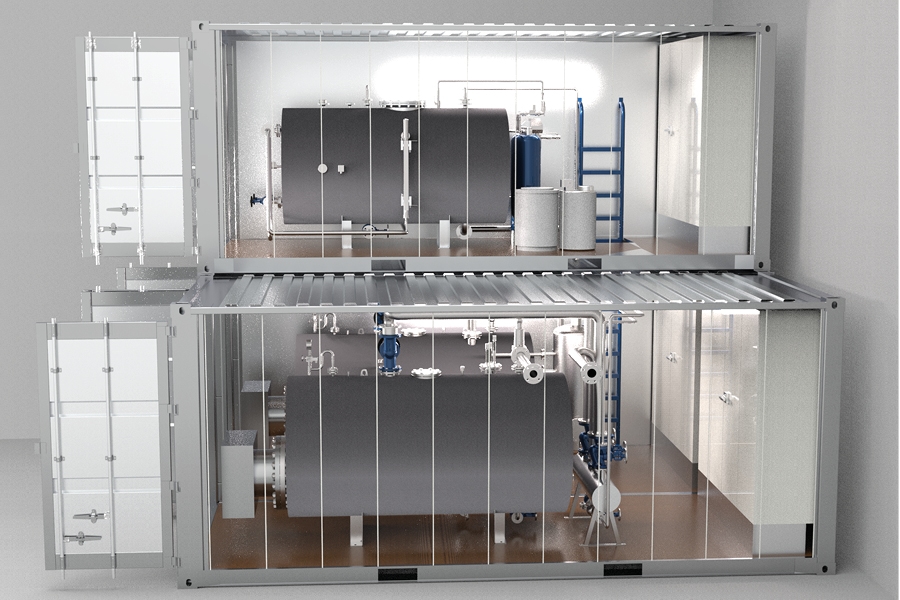 Kulcsrakész konténer kazánház – 2 db 1500 kg/h teljesítményű Ecotherm EESG 1500 gőzkazánnal technológiai gőz ellátásra