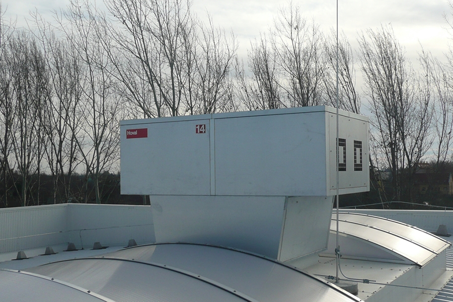 Termékeink tökéletes kombinációja: 33 db Hoval TopVent®; 9 db RoofVent® RP; 2 db ProcessVent® PVC és 7 db Enerblue hőszivattyú