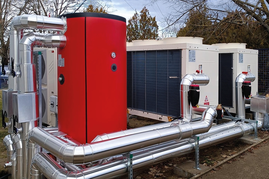 2 db Hoval Belaria® fit 85 és 1 db Hoval Belaria® fit 20 hőszivattyú, 2 db Hoval TopGas® classic 80 kondenzációs gázkazán