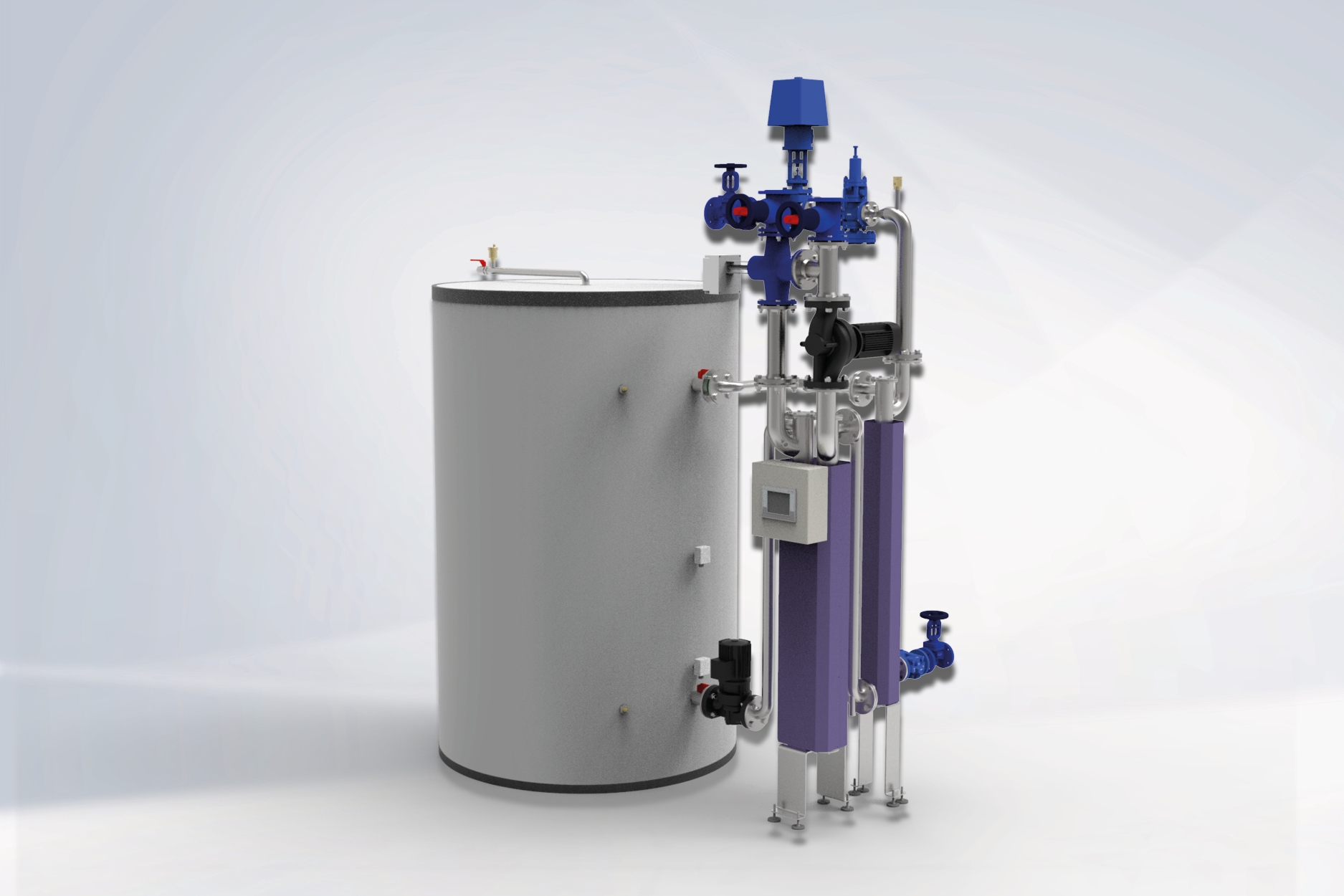 Például: Például hulladékhő vagy alacsony hőmérsékletű hőszivattyú előmelegíti a vizet, és egy másik elsődleges forrás, például melegvízkazán vagy gőz segítségével melegíti fel a végső hőmérsékletre
