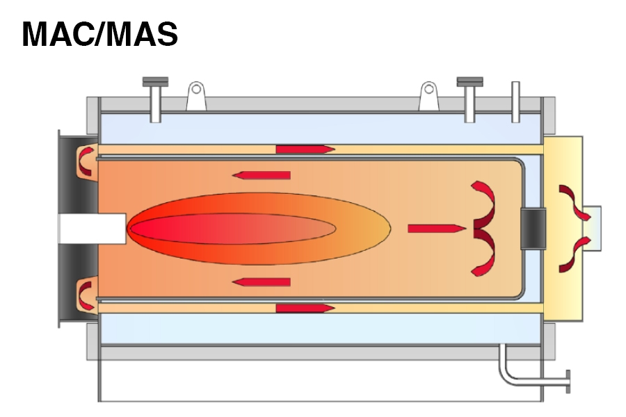 MAS: 3-huzamú, füstcsöves, túlhevített forróvízkazán 192 °C-ig. Teljesítmény: 140 - 2.910 kW, 9,8 bar nyomásig.