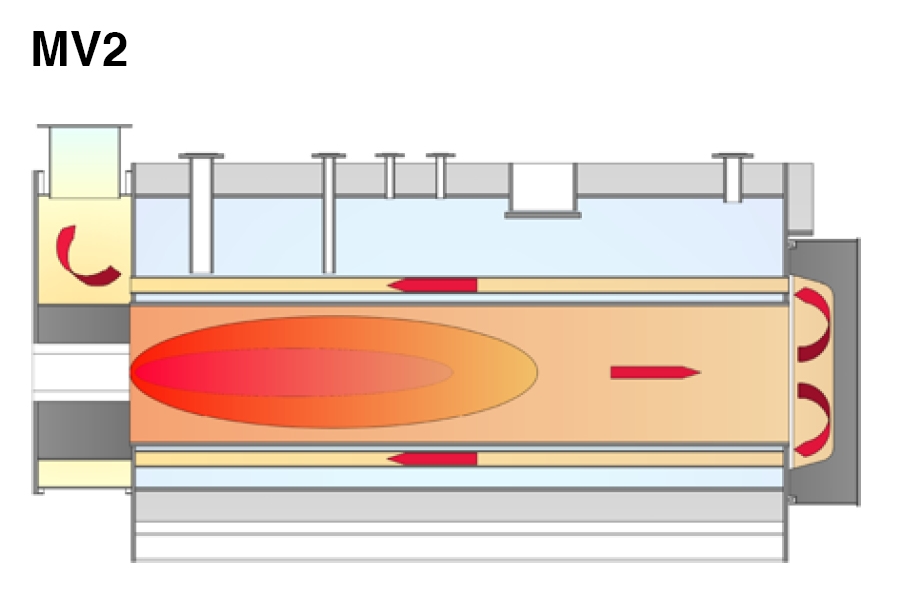 MV2: Két-huzamú, füstcsöves gőzkazán. Gőzteljesítmény: 300 - 4.000 kg/h, 15 bar nyomásig. Az MV2 típus telített és túlhevített gőz előállítására alkalmas.