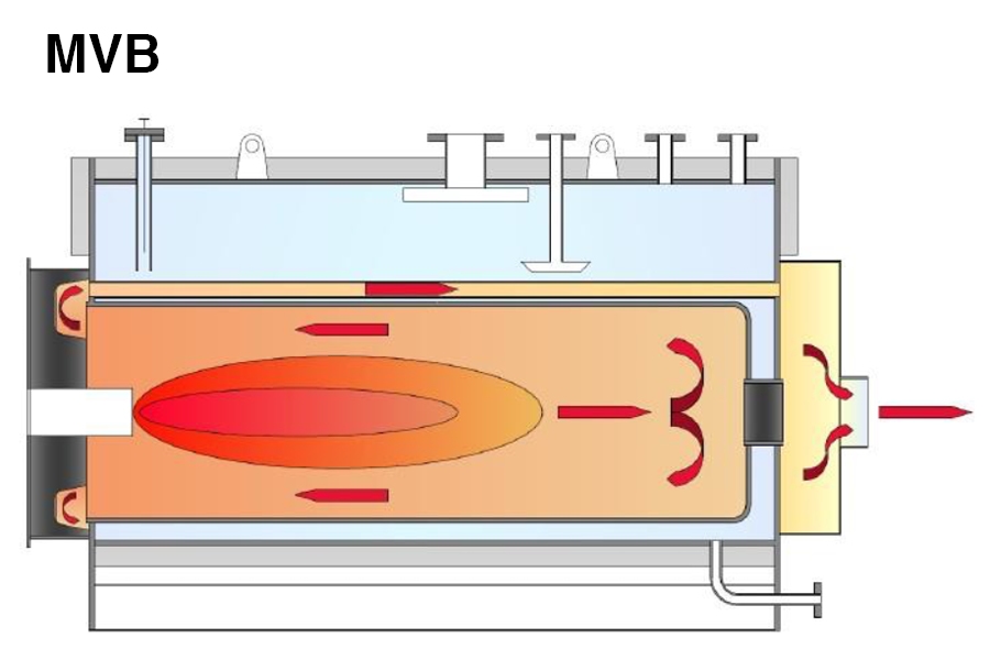 MVB: Három-huzamú, alacsony nyomású, füstcsöves gőzkazán. Gőzteljesítmény: 140 - 3.000 kg/h, 0,98 bar nyomáson. Kérésre az MVB típus telített gőz, forró víz és túlhevített víz előállítására alkalmas.