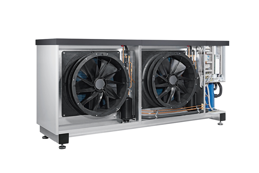 Kültéri felállítású, kétfokozatú levegő/víz hőszivattyú 2 db elkülönített hűtőkörrel fűtésre, hűtésre és HMV-előállítására, R410A munkaközeggel