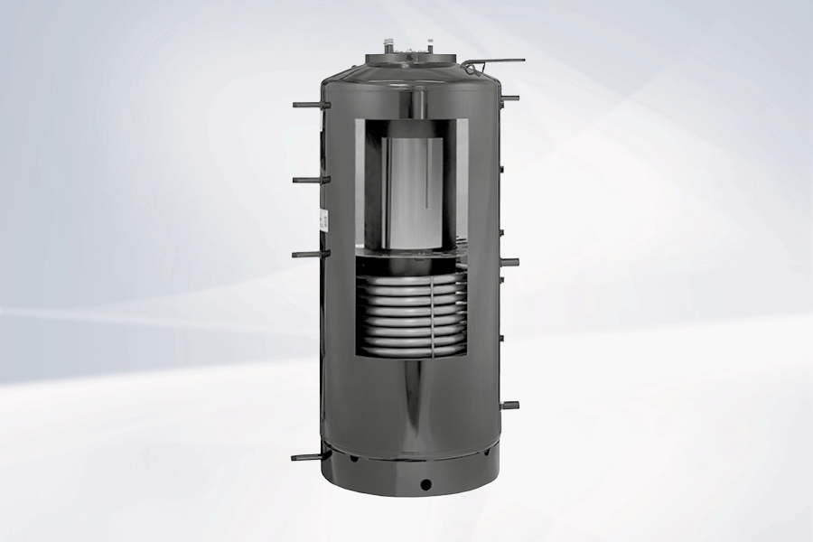 Az 500 - 1500 liter űrtartalmú, feketére lakkozott fűtési puffertartály belsejében egy behegesztett 150, 200 vagy 250 liter térfogatú, zománcozott használati melegvíztartály található.