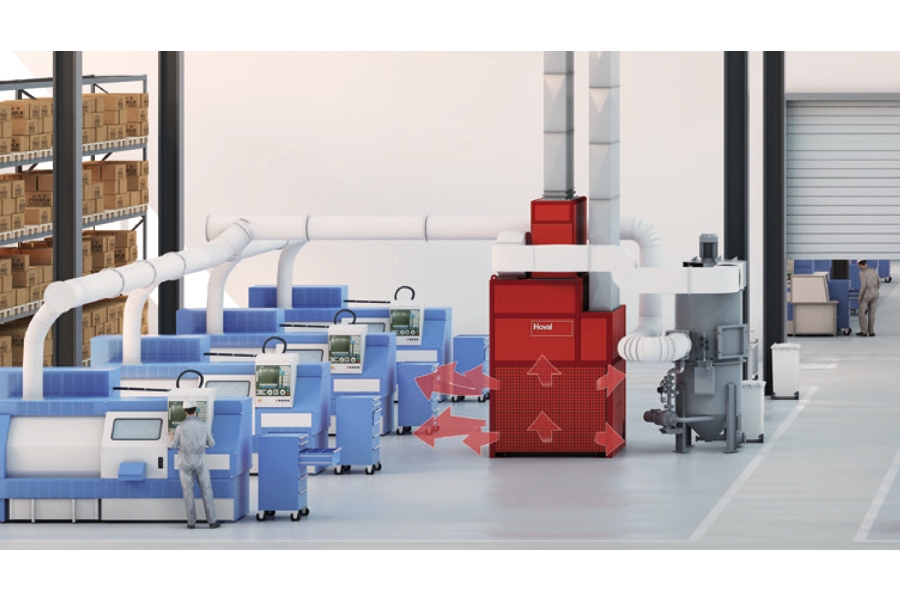 A ProcessVent készülék energia-optimalizált ventilátorokkal gondoskodik a csarnokok friss levegőjéről és visszanyeri a hőt a technológiai elszívott levegőből.