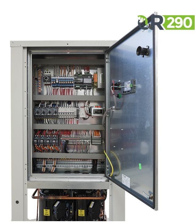 Hermetikus Scroll-kompresszorokkal és lemezes hőcserélőkkel felszerelt.