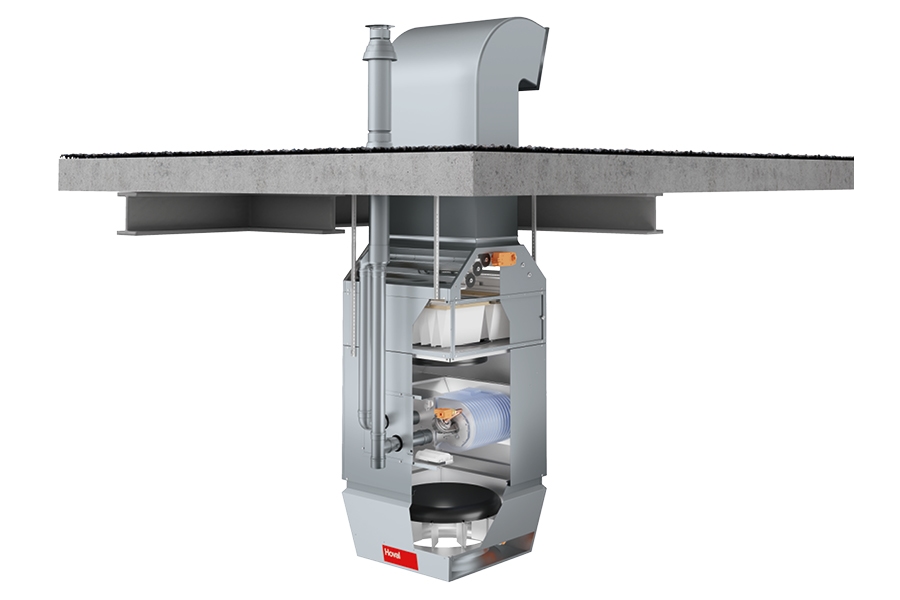 A zsaluzat helyzetétől függően a készülék beszívja a friss- és/vagy a helyiséglevegőt, megszűri azt, majd gázfűtéses hőcserélőjében felmelegítve az örvénykamrán keresztül befújja a helyiségbe. A decentralizált hőtermelésnek köszönhetően nincs szükség kazánházra és központi melegvízellátásra. A levegőelosztás a beépített légbefecskendezővel folyamatosan szabályozható.