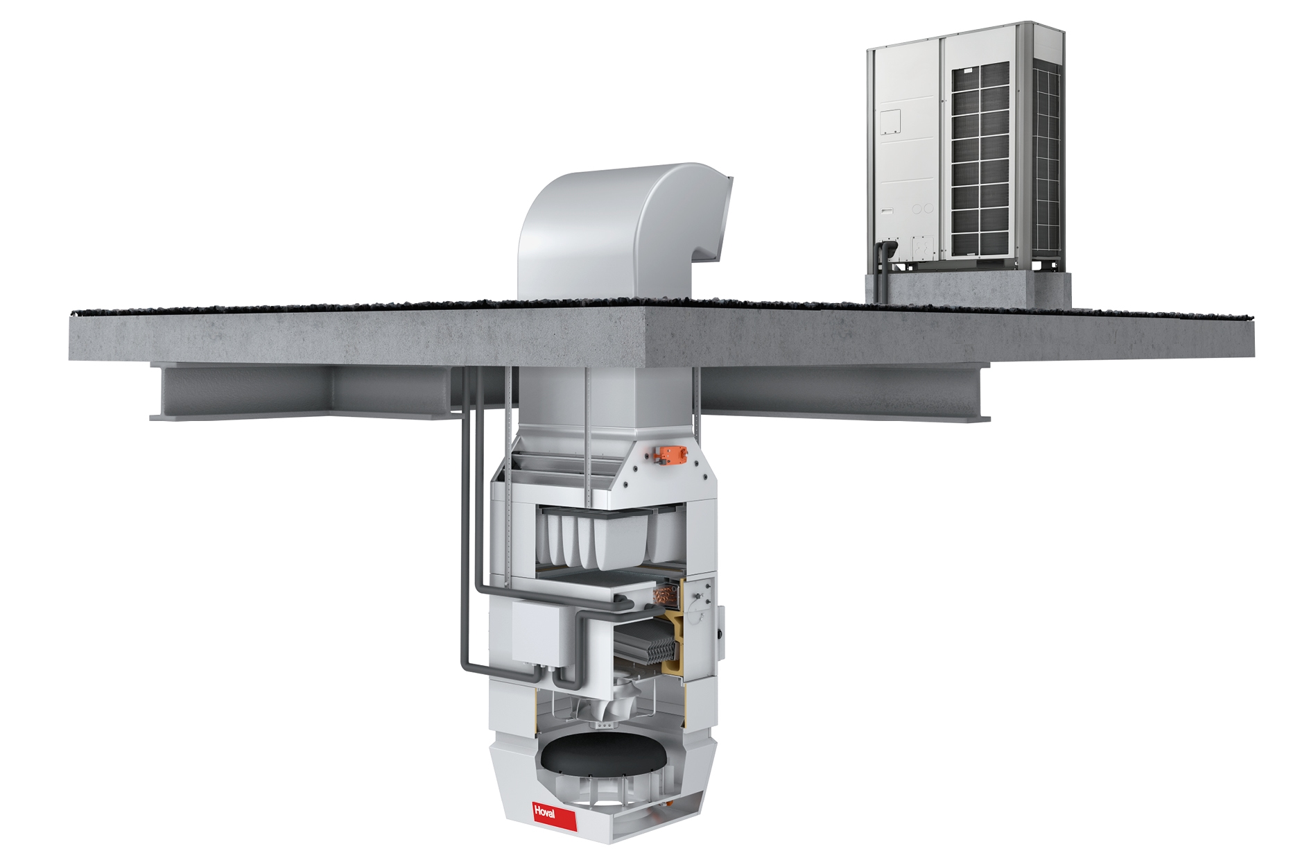 A TopVent® MP befúvottlevegős készülékek reverzibilis hőszivattyúval maximum 25 m magas csarnokok szellőztetését, fűtését vagy hűtésé látják el, rendkívül hatékony léglosztóval felszerelve.