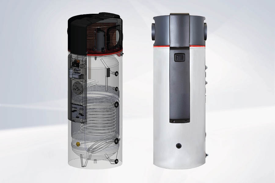 HMV-tároló beépített levegő-víz hőszivattyúval használati-melegvíz előállítására (450 liter)