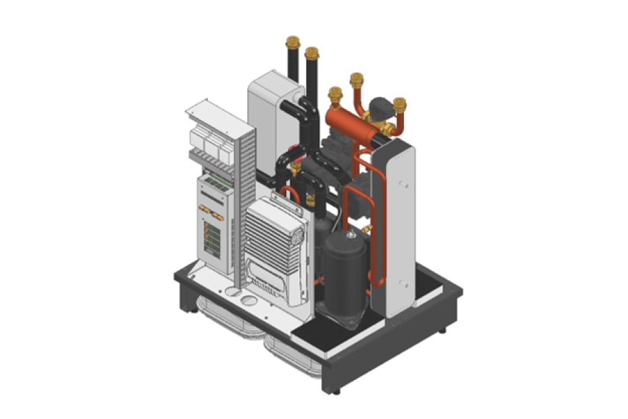 Beltéri felállítású, monoblokk talaj-víz hőszivattyú fűtésre és HMV-készítésre, opcionálisan hűtésre, R410A munkaközeggel